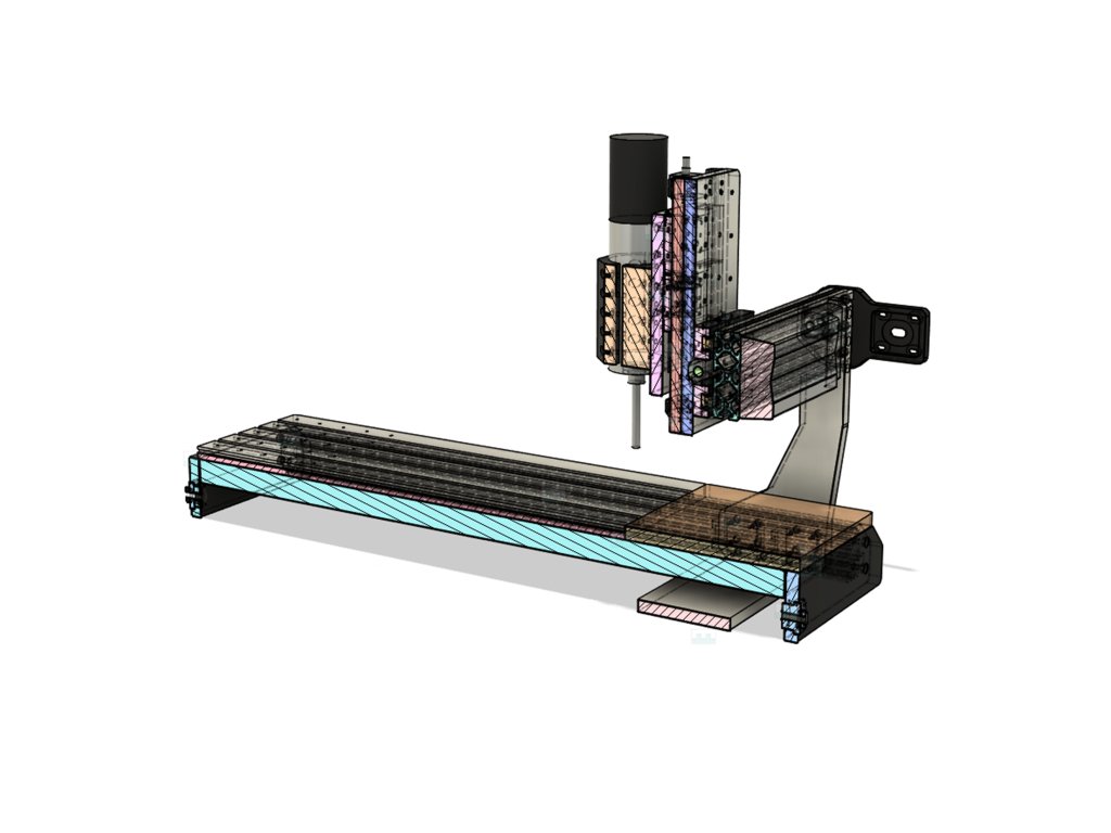Portálová frézka určená pro širokou škálu materiálů s obrobitelnou plochou 80x50cm. Frézka je poskládána z frézovaných ALU dílů v kombinaci s lineárním vedením HGR25 a šroubovisí s kuličkovými ložisky. Součástí jsou i betonová závaží
